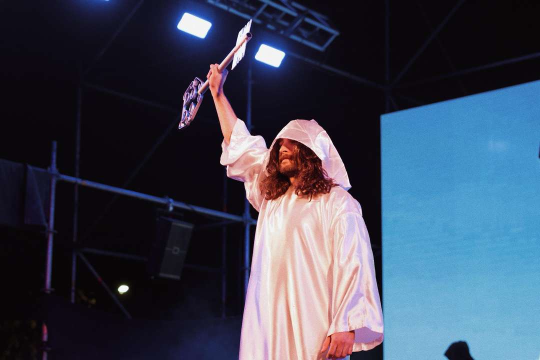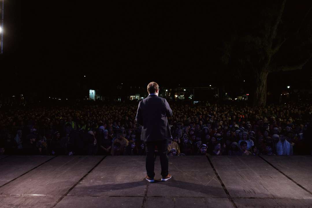 Luego de concluir la obra artística fue el pastor Bernardo Affranchino, de la Iglesia Cristo Para Todos, quien compartió un mensaje de esperanza y expresó: “Quiero invitarlos a todos en esta noche decirles ¿qué hacemos con Jesús? ¿dónde lo ponemos? Si es solo una historia. Si es un recuerdo o si lo metemos adentro de una cajita llamada religión. Quiero invitarlos a todos en esta noche a decidir en qué lugar de nuestras vidas va Jesús. ¿Dónde lo colocamos? ¿qué hacemos con Él? Ahí está la historia.”