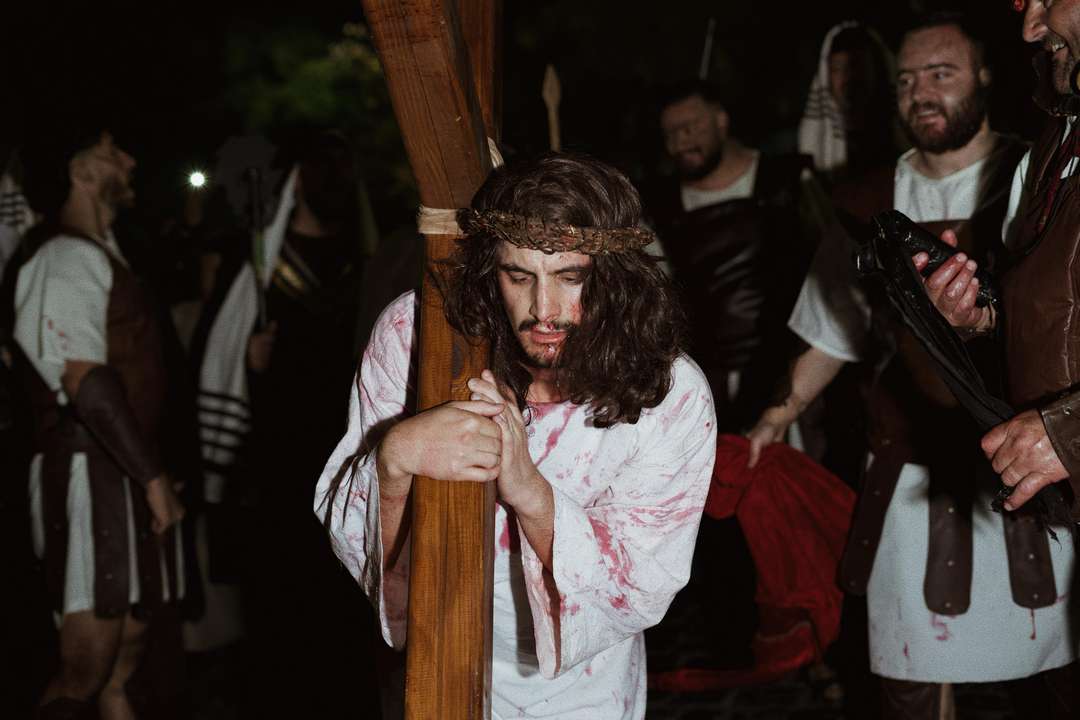 El momento donde los soldados romanos lo azotaron y posteriormente cuando Jesús cargó con la cruz, y la crucifixión junto a los dos ladrones donde exclamó sus últimas palabras ‘consumado es’ y por último su resurrección habiendo vencido la muerte.”